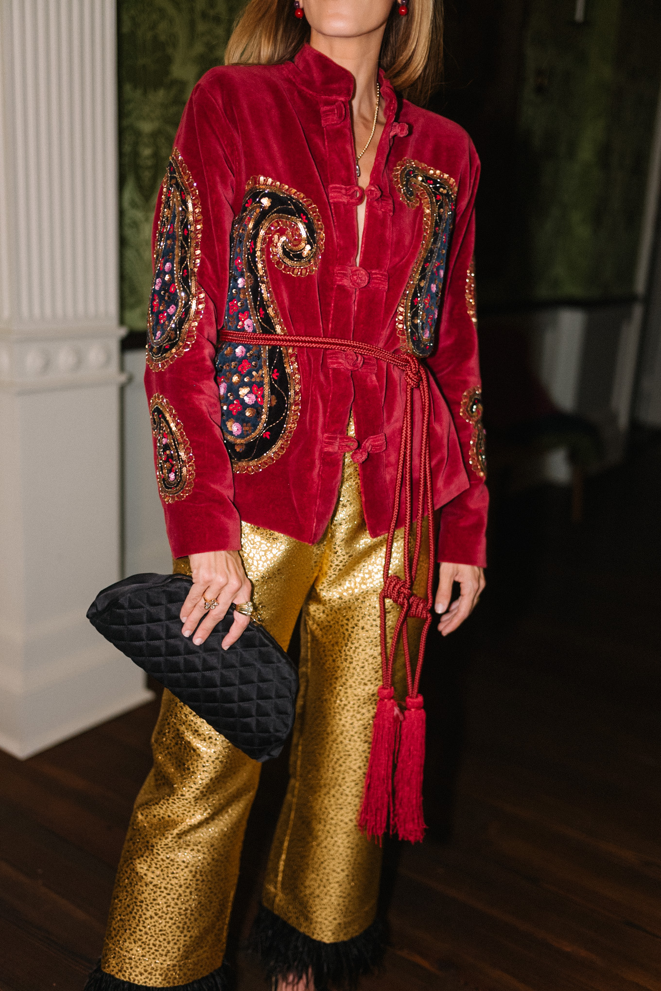 Philippa 1970 Jacket (similar here), Eleanor Leftwich Pants (sold out, similar here), Jimmy Choo Pumps, Chanel Clutch (similar here and here)
